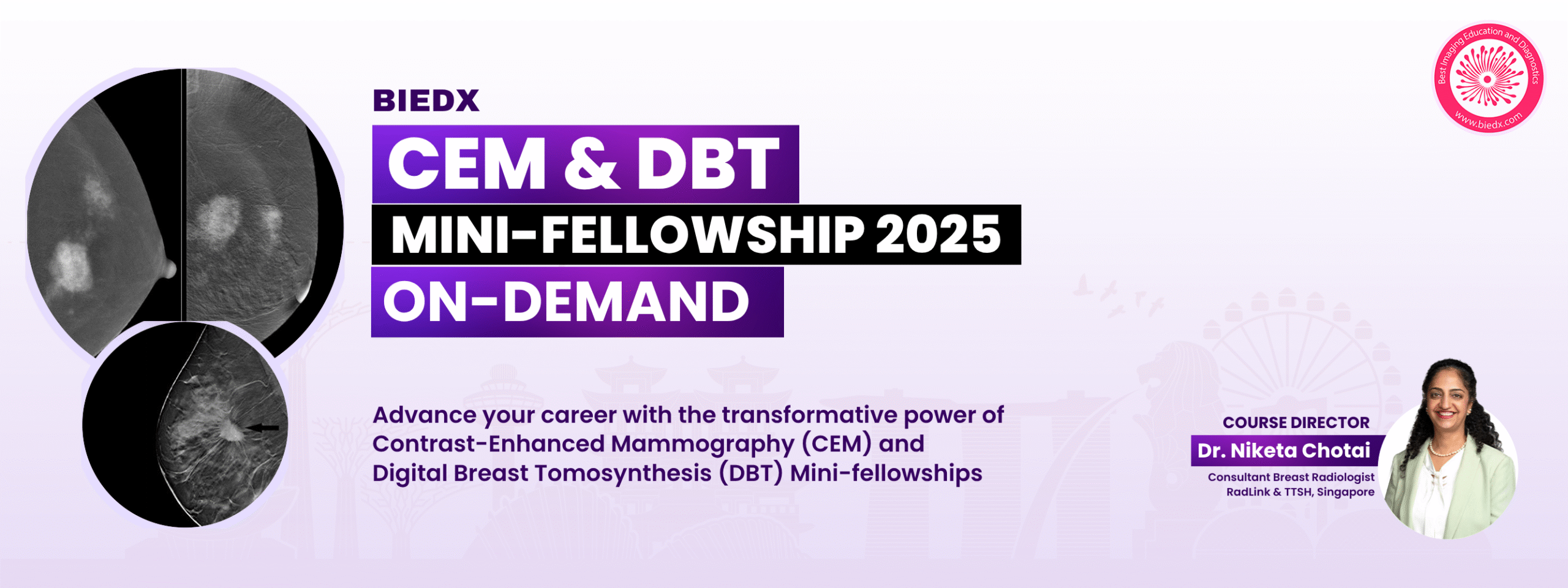 The CEM & DBT On-Demand Mini-Fellowship 2025 is an advanced online learning program designed to help radiologists master state-of-the-art breast imaging techniques from anywhere, at their own pace.