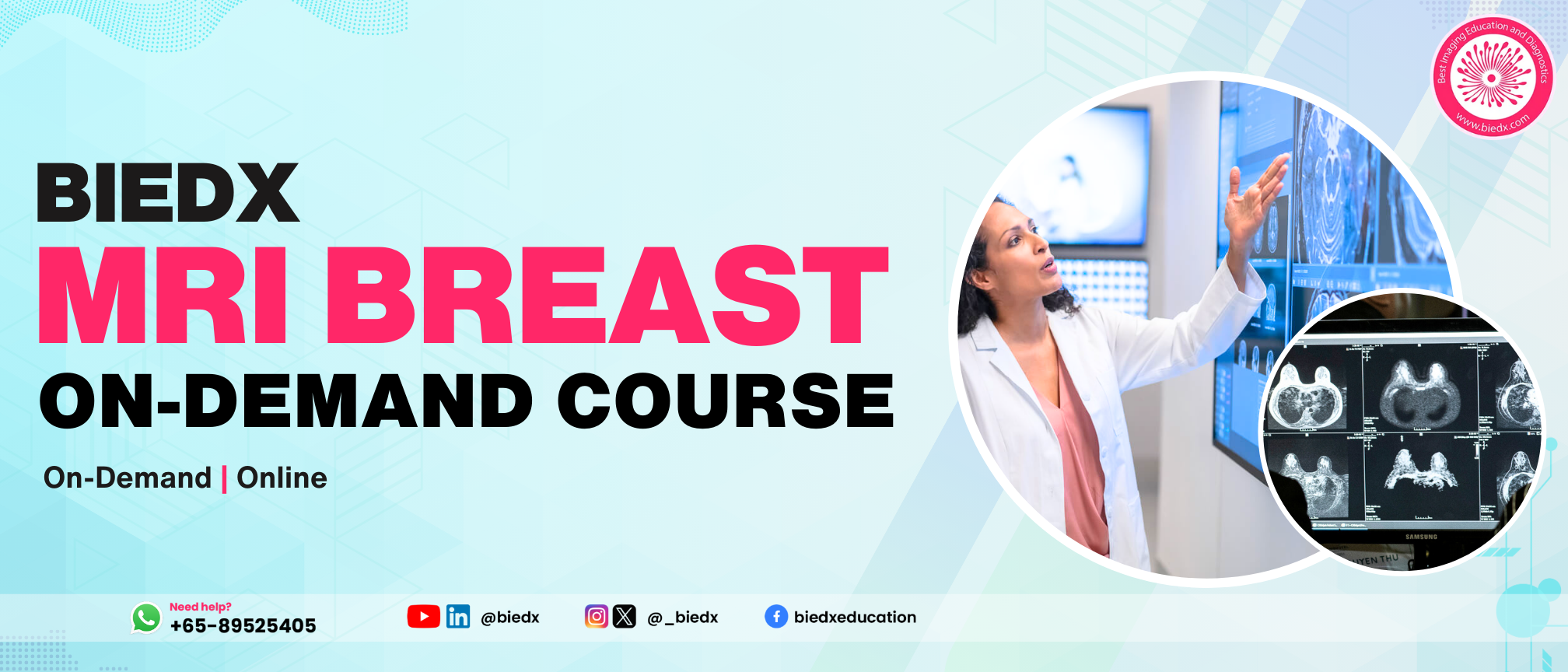 The BIEDX MRI Breast Online 2025 course is designed to offer a comprehensive understanding of MRI breast imaging techniques, protocols, indications, and approaches to reporting. This includes coverage of pre-operative staging, neo-adjuvant chemotherapy, post-operative scenarios, and augmented breasts.